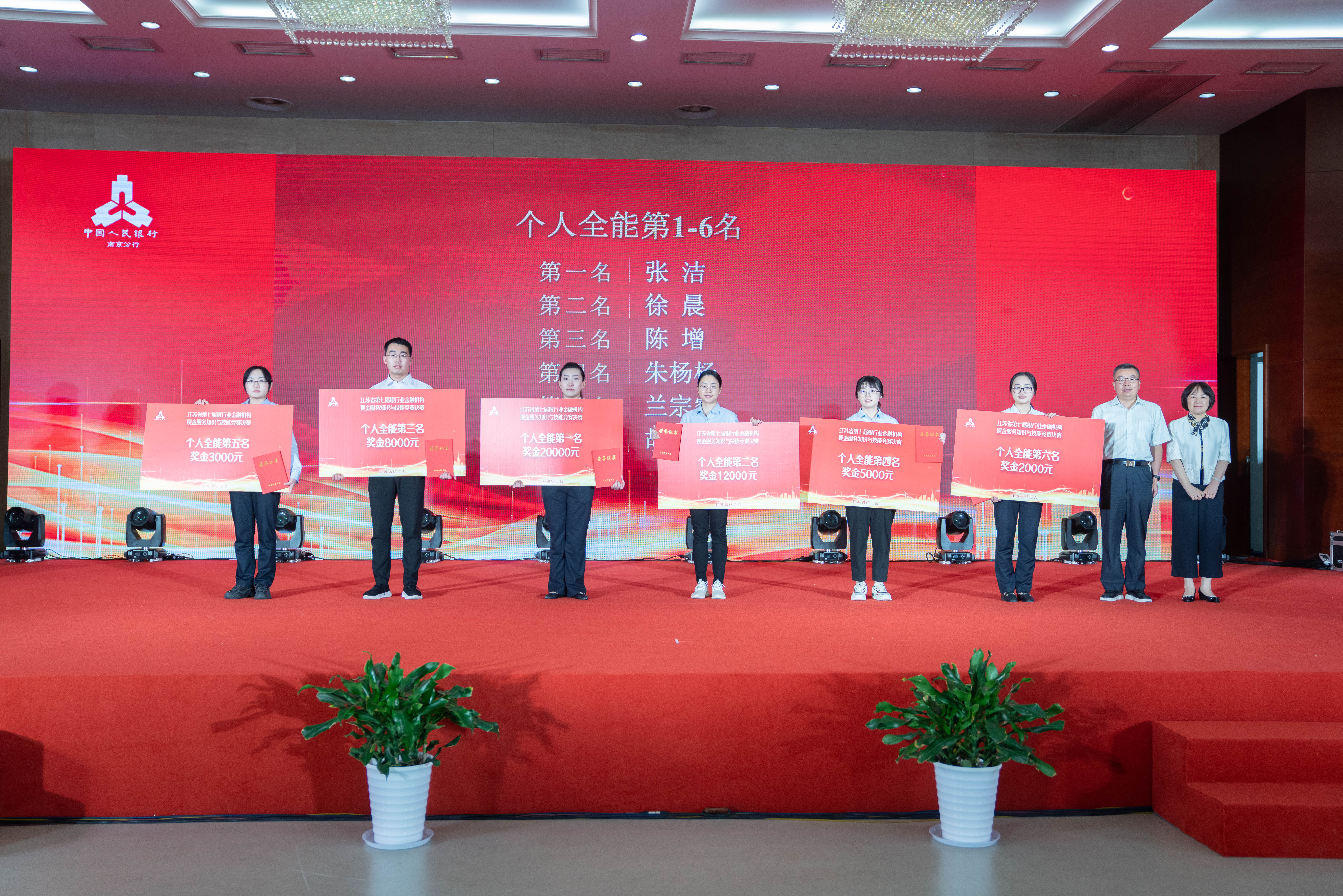竞赛包括理论知识竞赛、点钞识假技能竞赛及金牌讲师评选三项。每个代表队的两名选手参加理论知识和点钞识假技能竞赛,两项成绩相加得到个人全能成绩;一名选手参加金牌讲师评选。赛场上,选手们斗志昂扬、各展风采,以出色的专业技能赛出水平、赛出风采,得到评委和观众的一致好评。个人全能第1-6名选手将获得江苏省总工会授予的“江苏省五一创新能手”、江苏省人力资源和社会保障厅授予的“江苏省技术能手”称号。南京银行南京分行的张洁获得个人全能和点钞识假竞赛第一名,人民银行南京分行营业管理部代表队获得团体一等奖。